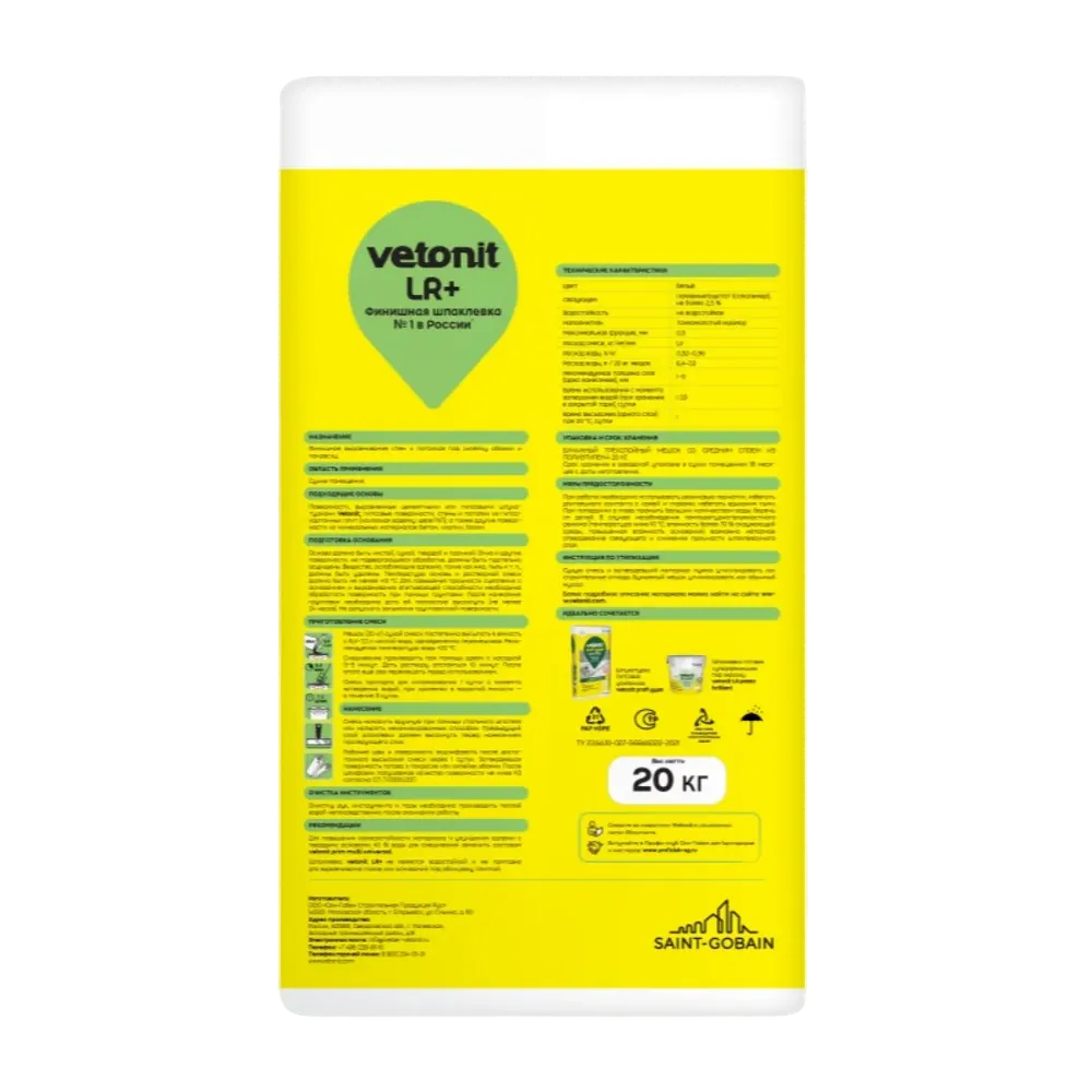 Шпаклевка финишная Vetonit LR+ для сухих помещений, 20 кг - купить в Самаре по выгодной цене