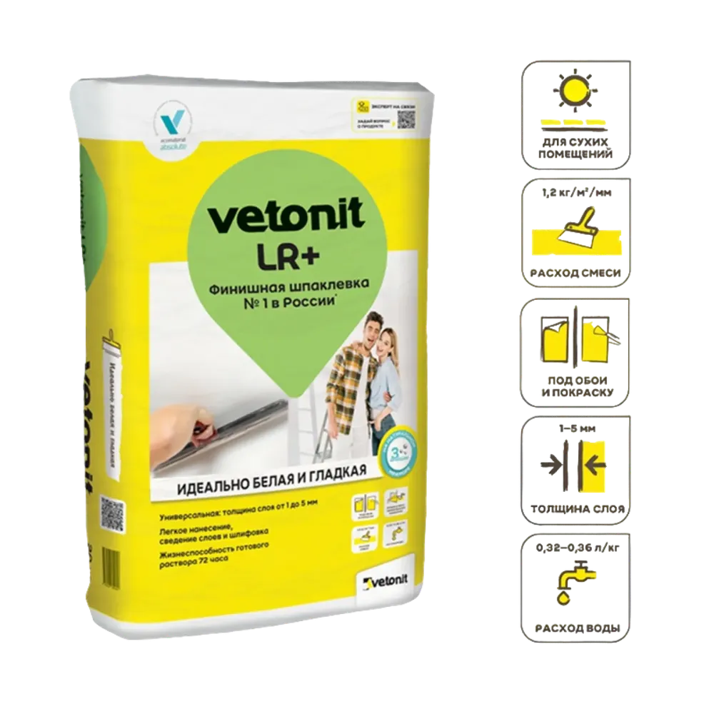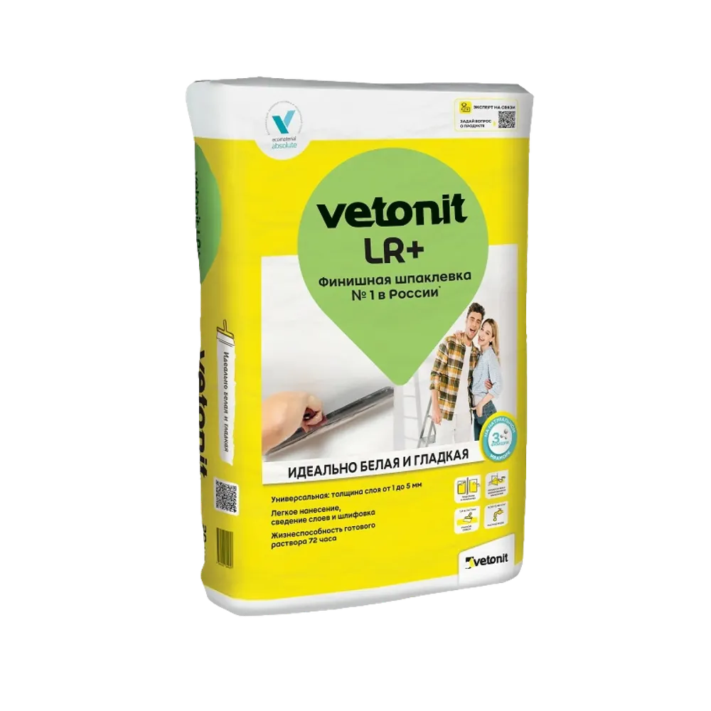 Vetonit LR+ (20 кг) — профессиональная финишная шпаклевка на полимерной основе, предназначенная для создания идеально гладких поверхностей в сухих помещениях. Материал применяется для выравнивания стен и потолков перед покраской или оклейкой тонкими обоями.